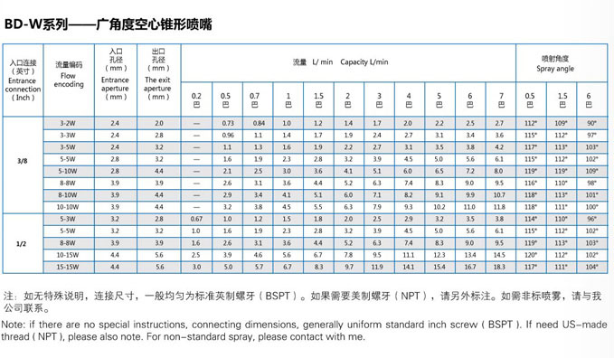 BD系列噴嘴有標準角度和廣角度之分。
